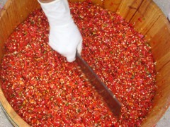 三角塘鎮盛產辣椒,肥大、肉質鮮嫩,味道清香,在歷史上久負盛名,家家都能腌制一壇剁辣椒。秋冬交替之季,農家從菜地摘回辣椒,洗凈、涼干、剁碎、拌鹽、放進壇中腌制,加入茶油、蒜籽,味道更佳,揭開壇蓋,滿屋飄香。